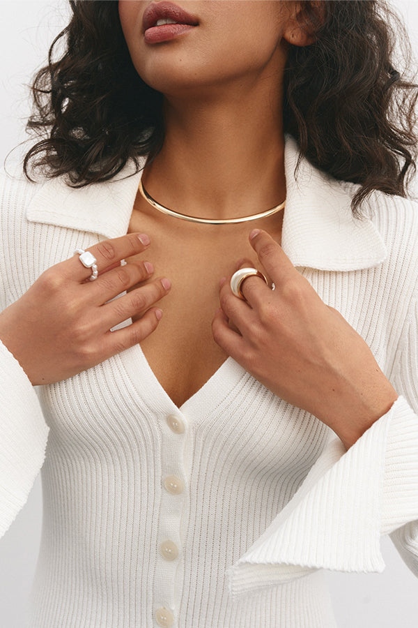 Metal Button Stretch Knit Maxi Dress