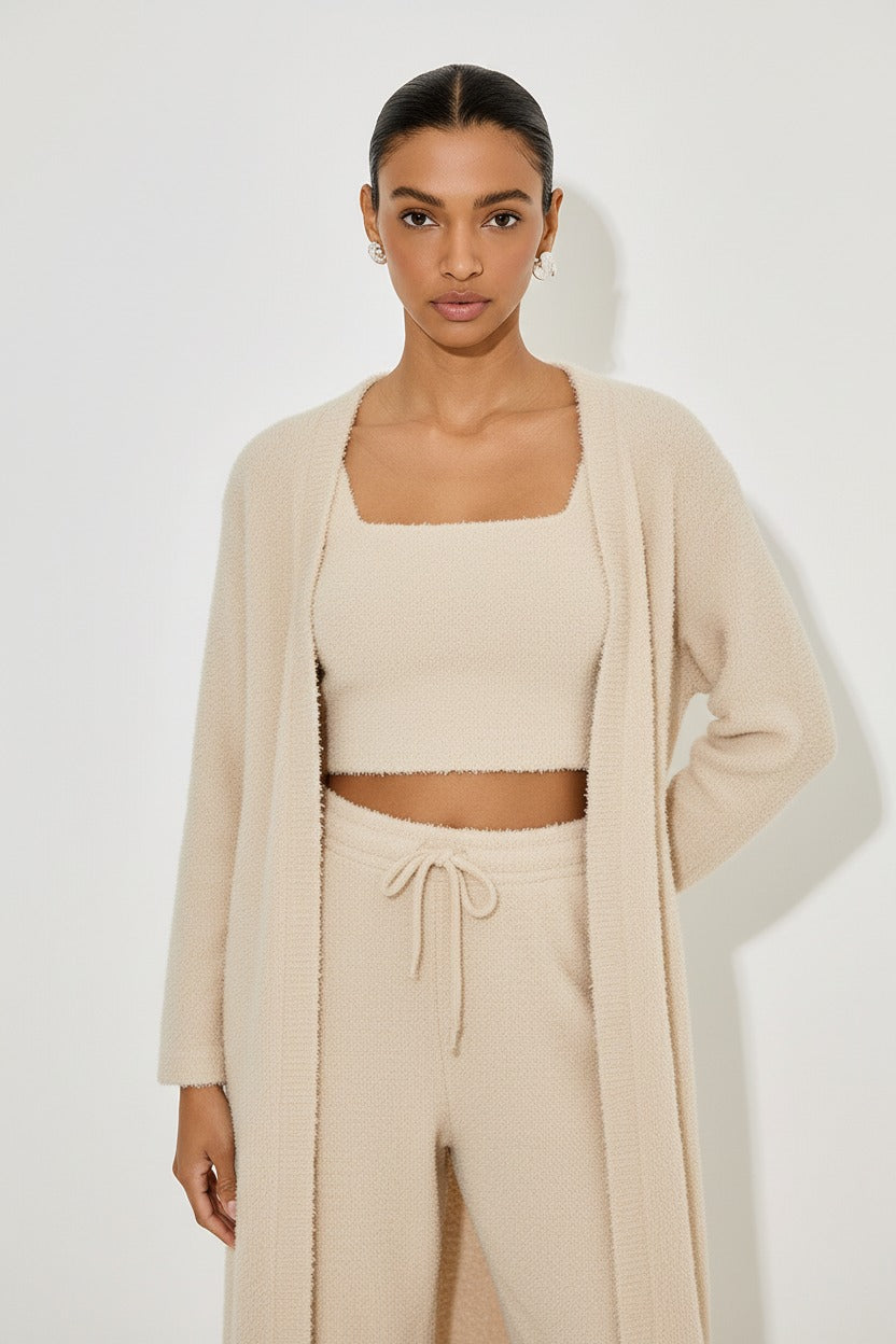 Fluffy Fleece 3-Piece Loungewear Set – Cozy Robe, Top & Pants