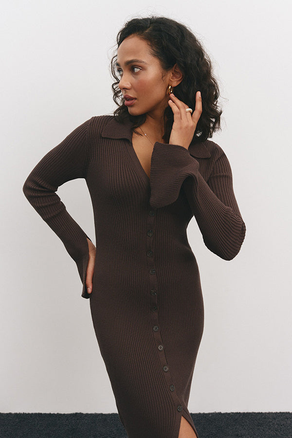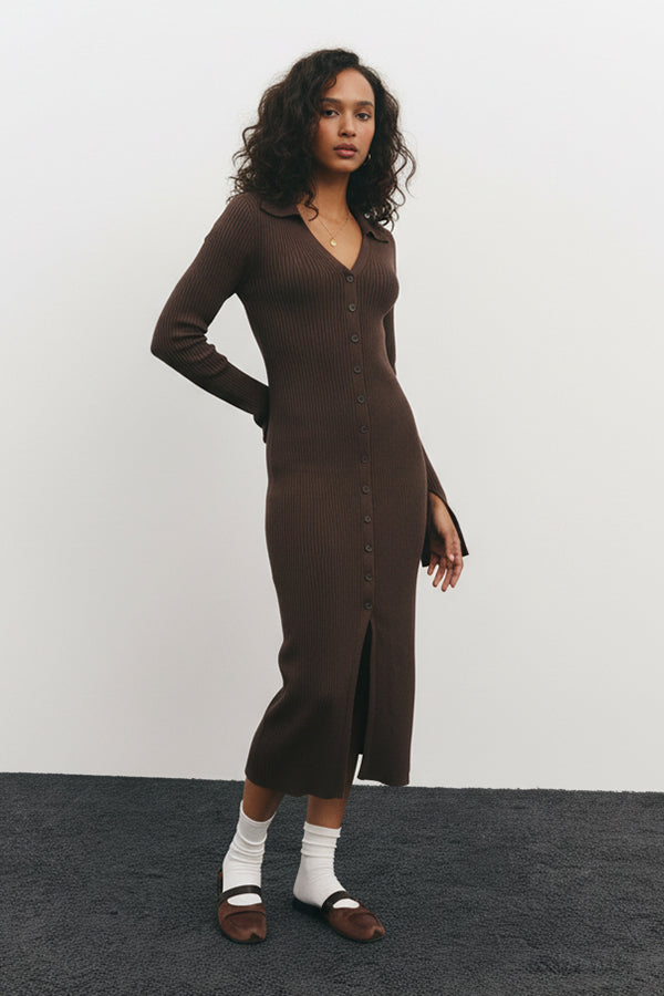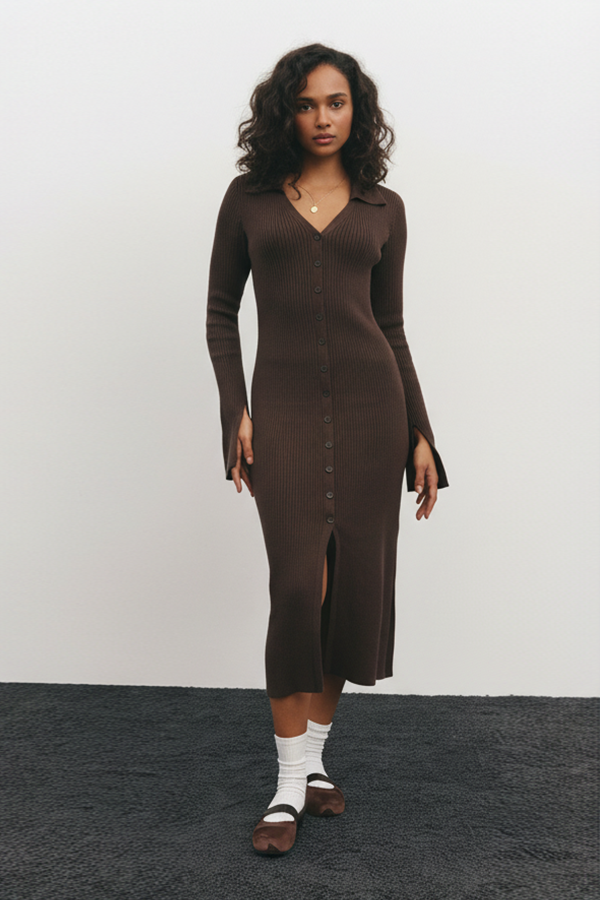 Single-breasted Knit Midi Dress