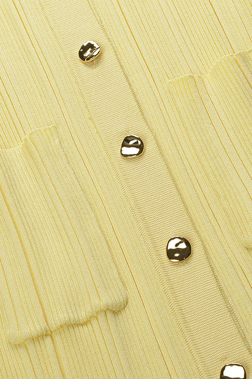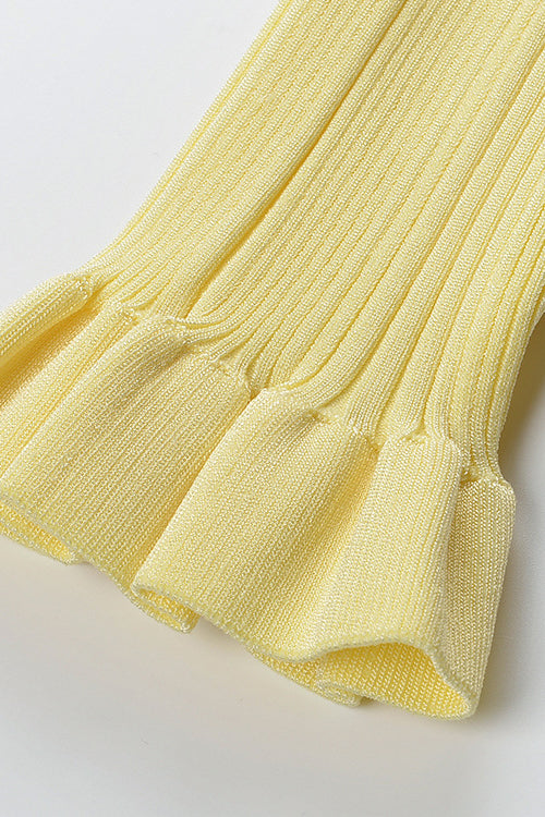 Elegant Pearl Button Knitted Ruffle Hem Mini Skirt